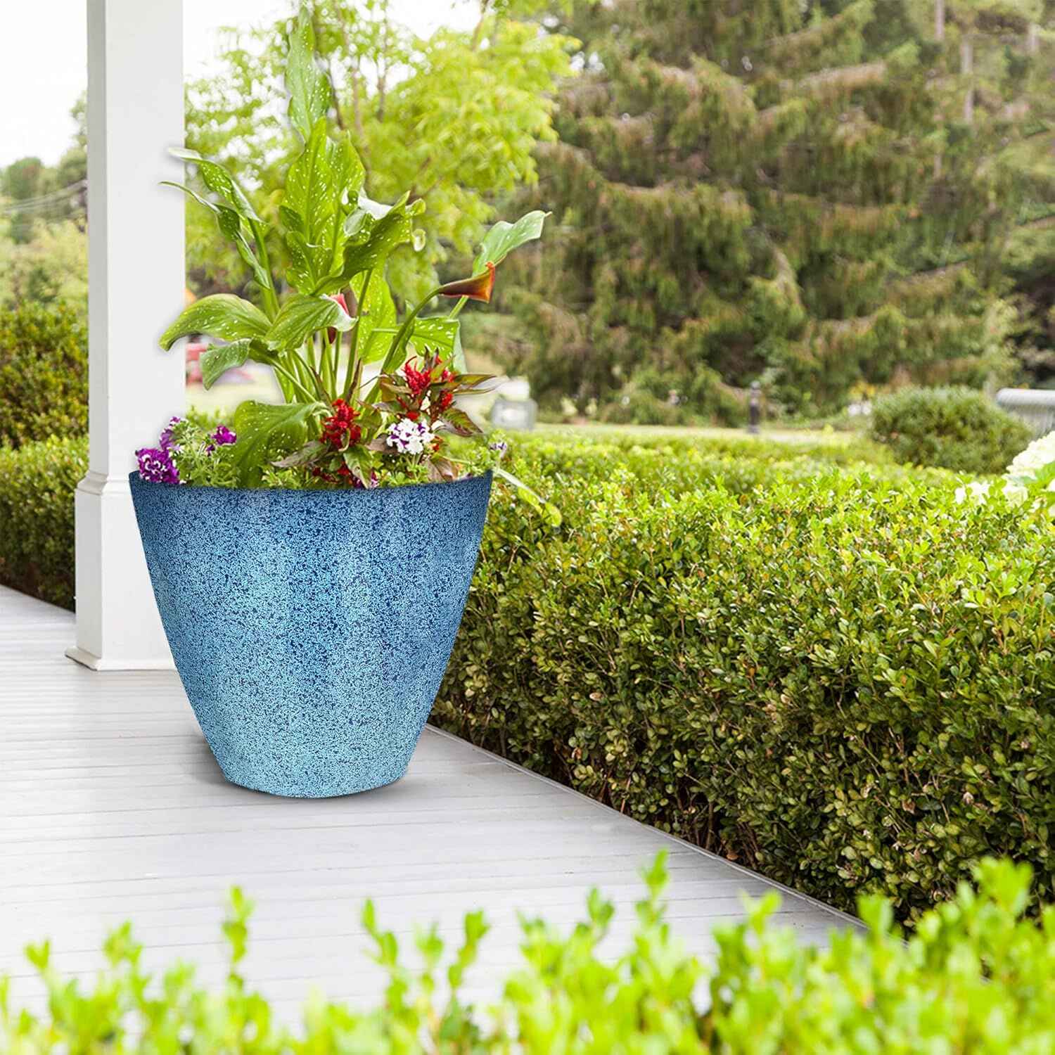 𝗠𝗢𝗗𝗘𝗥𝗡 𝗚𝗟𝗢𝗦𝗦𝗬 𝗗𝗘𝗦𝗜𝗚𝗡: Make your garden perfect composition by mixing and matching large outdoor SG Traders planters with smaller ones or arranging different plants. With their stunning shades of Forest Green, Ocean Blue, and Pink our selection is sure to elevate your decor with the addition of eye-catching, timeless planters designs. The advantage of using this planter is, it is so lightweight and can be moved around and rearranged in your garden according to your interests.